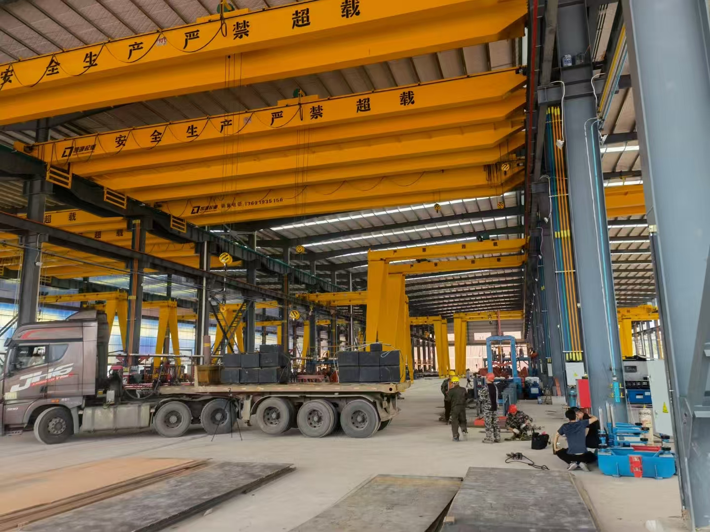 鋁電解多功能機(jī)組的作用與結(jié)構(gòu),鋁電解多功能機(jī)組是電解鋁廠的重要設(shè)備之一。其承擔(dān)著吸出鋁水、打殼、下料、更換陽(yáng)極、輔助提升陽(yáng)極母線、運(yùn)輸?shù)戎T多任務(wù)。鋁電解多功能機(jī)組的大車通常采用的是箱軌雙梁橋架結(jié)構(gòu)。主梁與端梁之間通過(guò)銷軸來(lái)進(jìn)行定位,并且采用高強(qiáng)度的螺栓進(jìn)行連接,不但連接性能好而且裝配也更加的方便。運(yùn)行采用的6輪支撐,雙邊單向驅(qū)動(dòng),采用的為三合一的減速器;此外具有懸掛緩沖裝置,車輪采用的是垂直輪加水平輪導(dǎo)向的方式。大車主要以外的主要組成部分有:包括運(yùn)行機(jī)構(gòu)與橋架、絕緣葫蘆以及各種供氣裝置等。另外為了運(yùn)行更加安全還安裝了預(yù)防脫軌的裝置。鋁電解多功能機(jī)組是一種更加細(xì)分化的機(jī)械設(shè)備,在目前具有比較重要的應(yīng)用,鋁電解多功能機(jī)組造價(jià)不菲,選擇好的廠家品牌是比較重要的。凱源起重專業(yè)生產(chǎn)優(yōu)質(zhì)鋁電解多功能機(jī)組,歡迎有需求的用戶同我們聯(lián)系。
